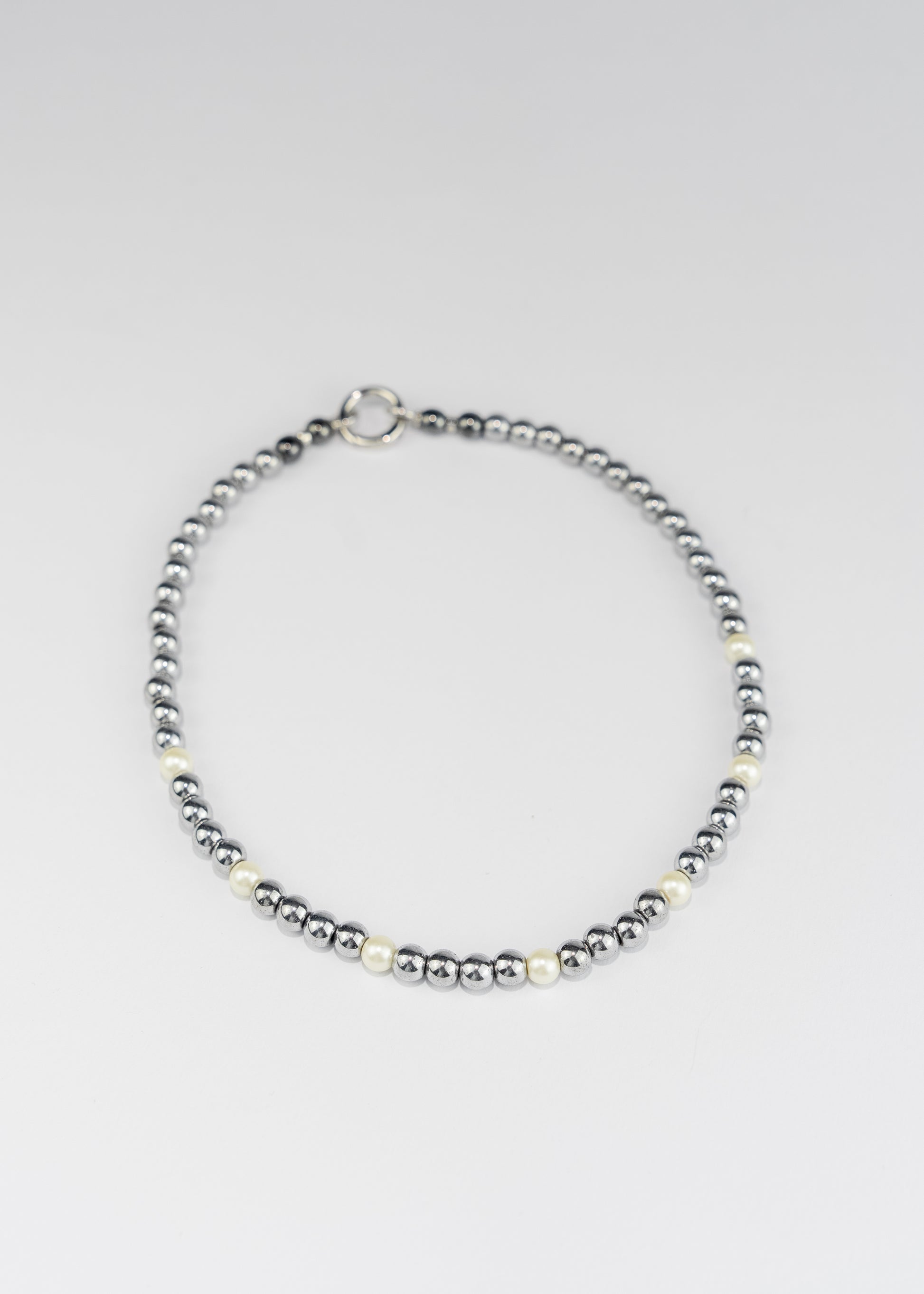 A fine line of silver-toned beads with soft pearl accents - simple, elegant, and quietly magnetic.