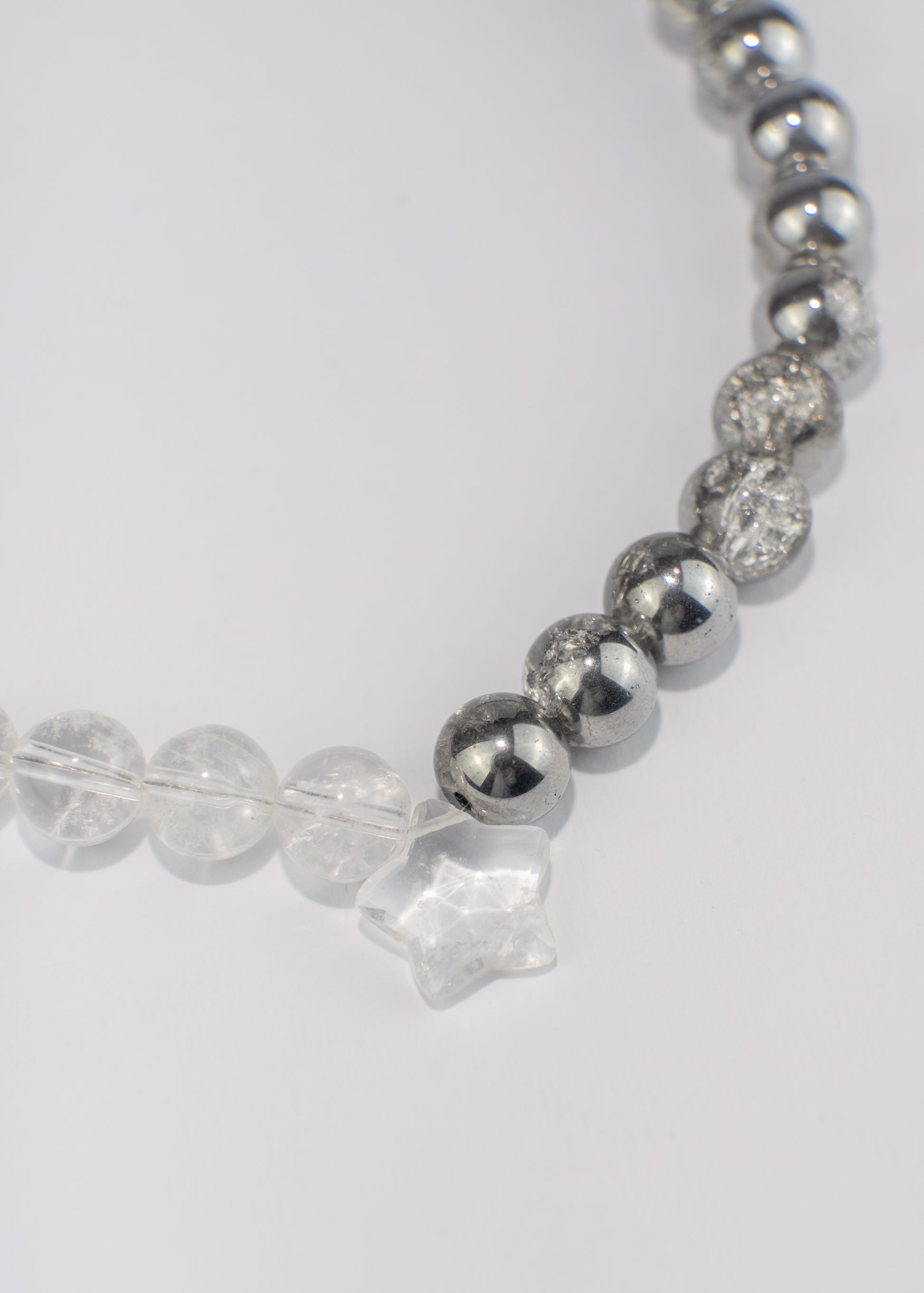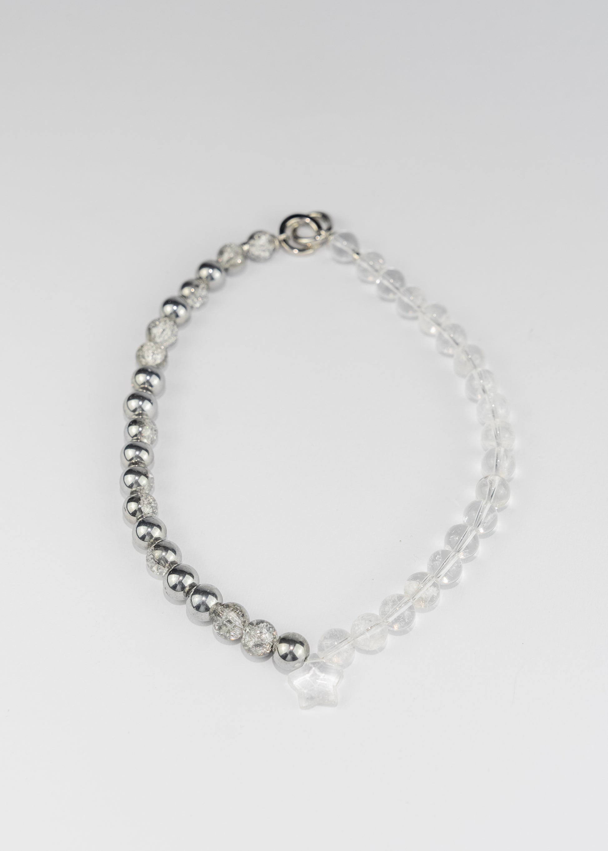 A clear rhythm of crystal and light, finished with a small star - a piece that catches brightness with every movement.