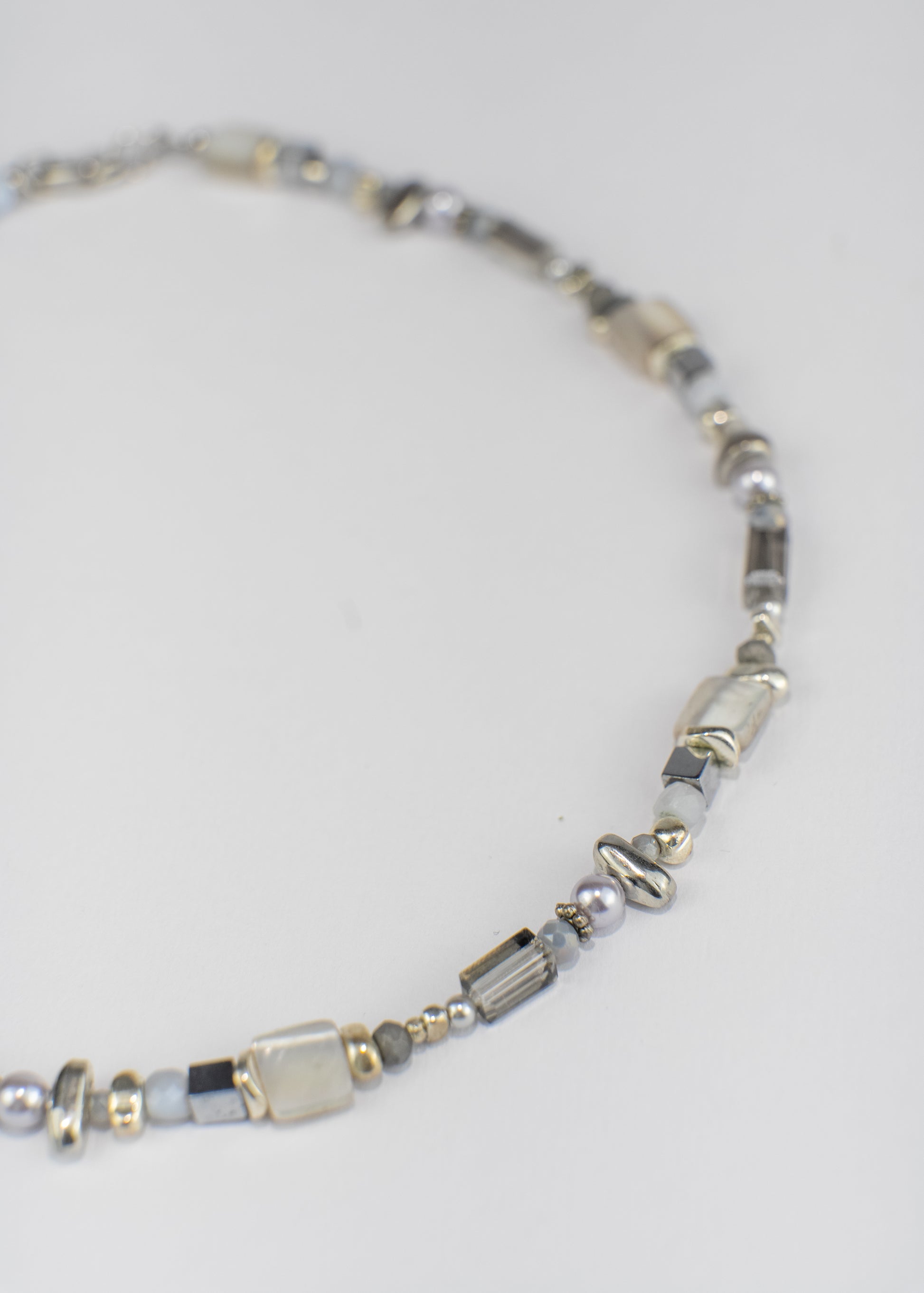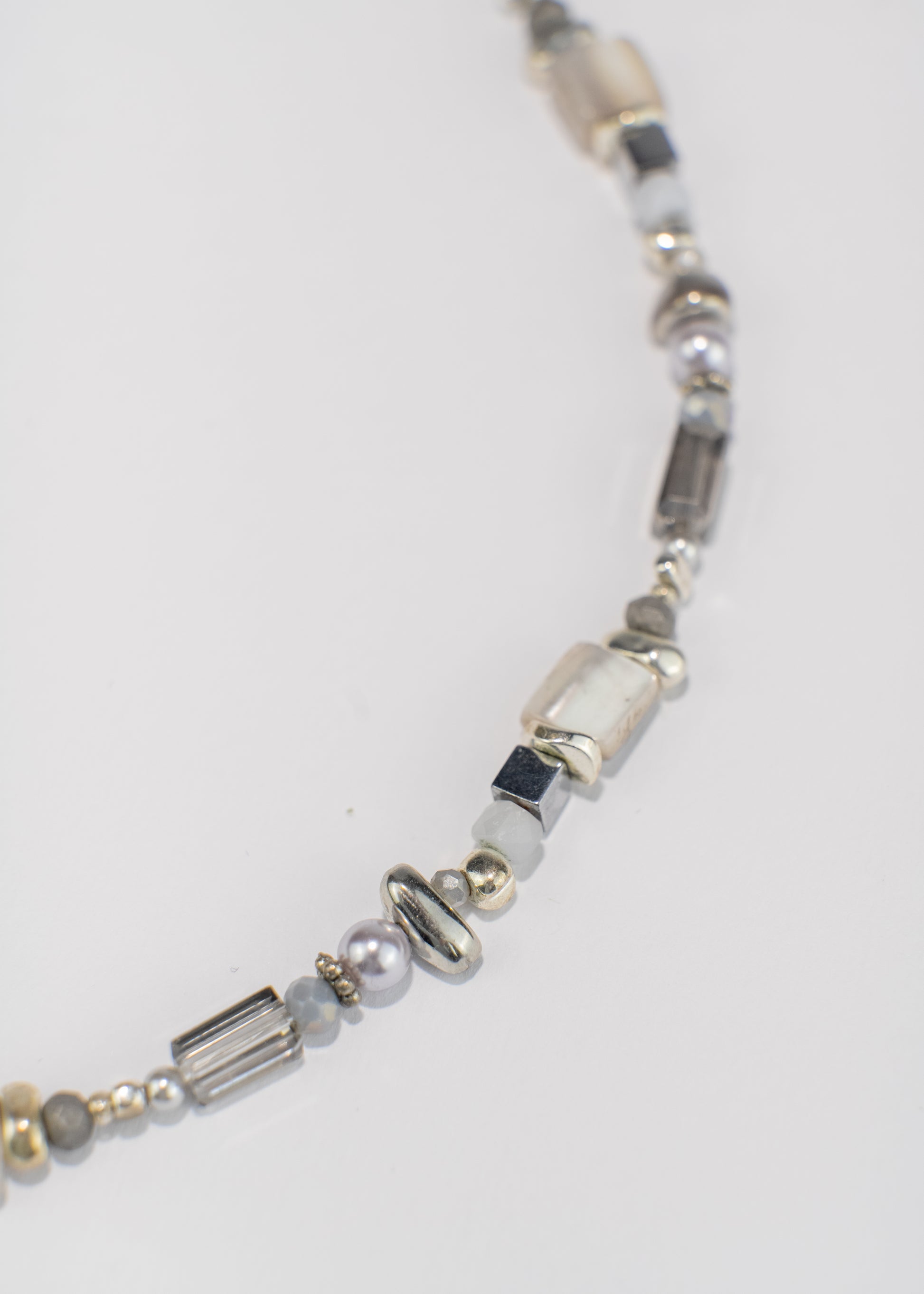 Tiny reflections of pearl and glass come together in a quiet rhythm - delicate, luminous, and effortlessly refined.